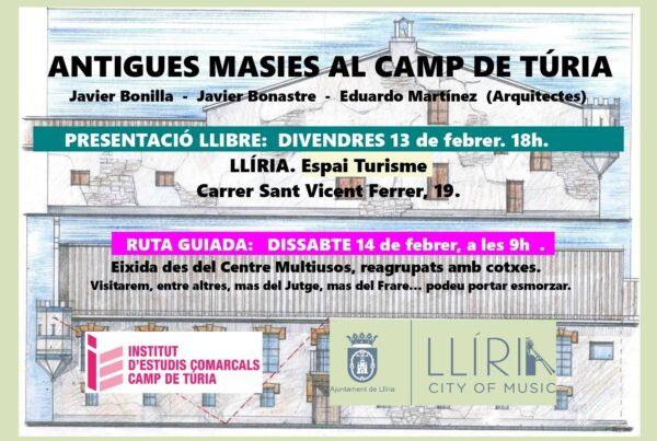 La presentació del catàleg Antigues Masies al Camp de Túria, publicat per l’Institut d’Estudis Comarcals del Camp de Túria amb la col·laboració de la Institució Alfons el Magnànim i l’Àrea de Cultura de la Diputació de València ha anat acompanyada de visites a les masies que encara sobreviuen a la nostra comarca. Finalitzades les presentacions i visites, et portem de la ma del pel pòdcast comarcal “Cròniques Edetanes” un recull dedicat a aquestes interessants mostres de patrimoni arquitectònic i cultural.